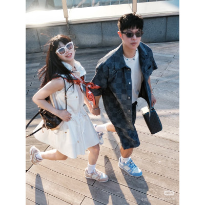 Louis Vuitton 25男士真丝Damier印花尖领短袖衬衫 夏季奢华商务休闲 Louis Vuitton蓝色格子衬衫 金属钮扣设计 Louis Vuitton真丝斜纹衬衫 经典Damier图案 Louis Vuitton尖领短袖衬衫 S-XL码可选