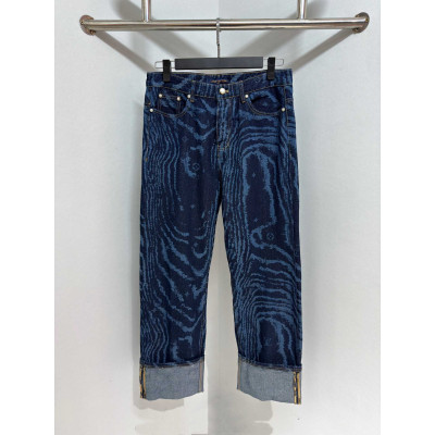 Louis Vuitton 25FW Skateboard Jeans with Turned-Up Hem|Stylish LV Monogram Print Jeans for Men|High-Quality Denim with Damier Suede Label|Shiny Rivet Accents on Jeans|Comfortable Skateboard Fit Jeans