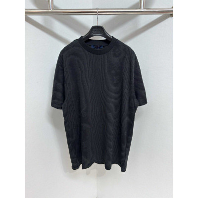 Louis Vuitton 2025 Black Letter Jacquard Cotton T-Shirt|LV Monogram Floral Print T-Shirt|Classic Fit Black LV T-Shirt|Luxury Louis Vuitton Cotton Tee|Stylish LV Moire Pattern T-Shirt