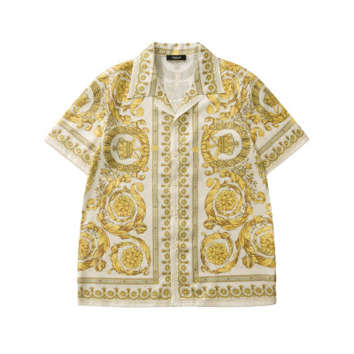 New VS Barocco Print Silk Short Sleeve Shirt|Stylish VS Barocco Print Silk Shirt|Luxury VS Silk Shirt with Signature Barocco Print|Fashionable VS Short Sleeve Silk Shirt|Elegant VS Barocco Print Button-Up Shirt