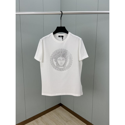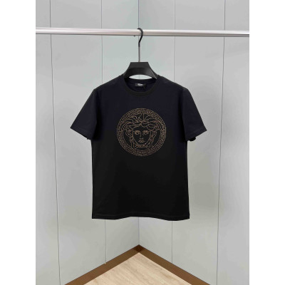 Versace 25 Spring/Summer New Medusa Crystal Print Short Sleeve T-Shirt|Custom 80s Double Mercerized Cotton Fabric|Black & White Color Options|Sizes S to XXXL|Custom Sizes 4XL & 5XL Available