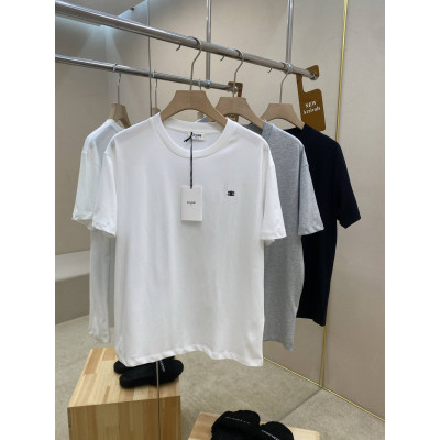 CELINE 25SS New Arrival TRIOMPHE Embroidered Plain Knit Loose T-Shirt|Luxury Embroidered CELINE Logo T-Shirt for Men and Women|Soft and Breathable Long Staple Cotton T-Shirt|Trendy Unisex CELINE T-Shirt with Triumph Logo|High-Quality CELINE Embroidered T-Shirt for Casual Wear