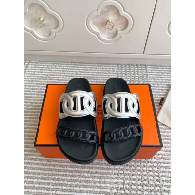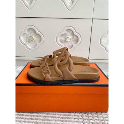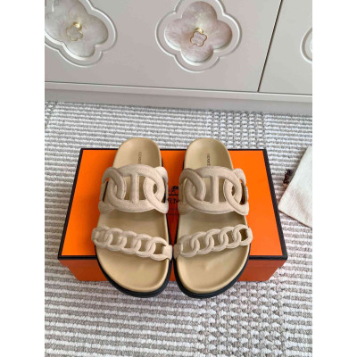 Hermès Pig Nose Chain Sandals for Couples|Luxury Hermès Pig Nose Design Chain Sandals|Top Quality Hermès Pig Nose Sandals with Leather Sole|Hermès Pig Nose Sandals with Imported Calfskin|Stylish Hermès Pig Nose Sandals for Men and Women