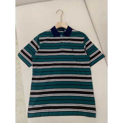 Prada 2025新款绿色撞色条纹Polo衫 Prada活力撞色设计男士上衣 Prada字母刺绣徽标时尚单品 Prada罗纹针织领口Polo衫 Prada正品男士必备服饰