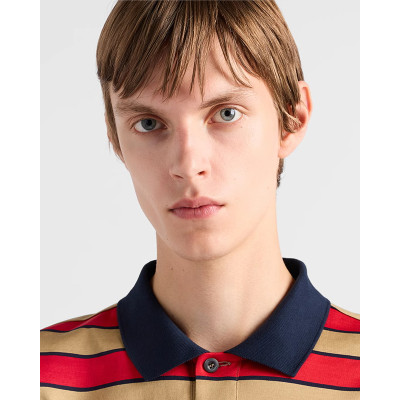 Prada 2025新款红色撞色条纹Polo衫 Prada经典罗纹针织撞色领男士上衣 Prada字母刺绣徽标时尚单品 Prada正品男士必备Polo衫 Prada撞色设计高品质服饰
