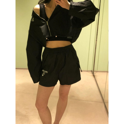 Prada 印花尼龙短裤 2024春夏新款 Prada标志性再生尼龙运动短裤 Prada立体剪裁修身版型短裤 Prada厚板印花工艺休闲短裤 Prada男女同款百搭潮流单品