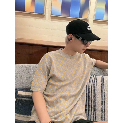 Louis Vuitton 25针织字母短袖T恤 Monogram Glow提花系列 灰色有机棉男士T恤 Louis Vuitton 2024春夏新款 黄色字母装饰 奢侈品休闲短袖 舒适有机棉面料 XS-L尺码 Louis Vuitton针织系列