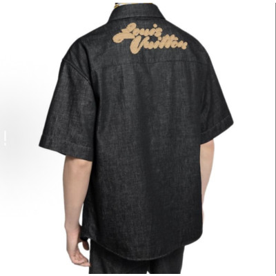 Louis Vuitton 字母徽标棉质牛仔短袖衬衫 LV Raffia刺绣工艺 青年布面料 手写体标识 Louis Vuitton春夏新款男士短袖衬衫 正品保障 S-XL尺码可选 Louis Vuitton男士休闲短袖衬衫套装