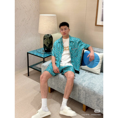 Louis Vuitton 2025春夏新款蓝色真丝印花短袖衬衫 男士奢侈品商务休闲衬衫 Louis Vuitton真丝翻领衬衫 艺术印花设计 透气舒适短袖上衣 正品保障 Louis Vuitton最新系列衬衫