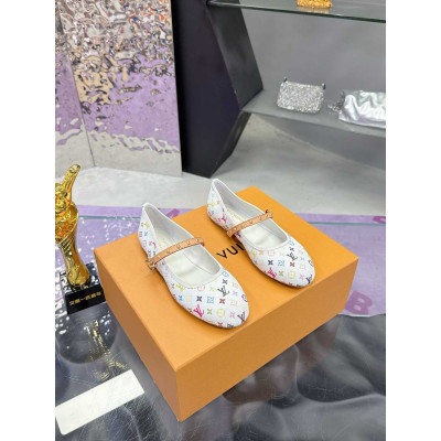 Louis Vuitton x Takashi Murakami Mary Jane Flats|The Most Popular Spring/Summer Runway Item|Worn by Top Models|Versatile and Stylish|Handcrafted with Genuine Leather|LV Colorful Monogram