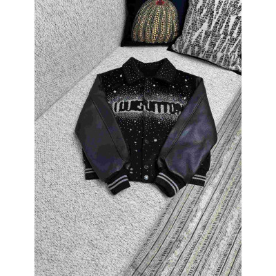 Louis Vuitton 25SS New Baseball Waistcoat Jacket|Exquisite Embroidered Crystal and Bead Detailing|Wool and Leather Dynamic Silhouette|Runway-Inspired LV Logo and Slogan|Available in Size 46.50