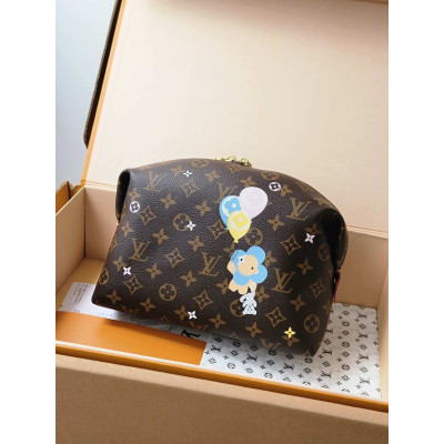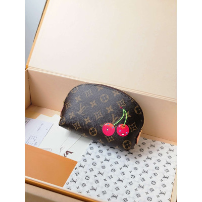 Original Quality Monogram Cherry Makeup Bag|Compact and Stylish Monogram Makeup Pouch|Luxury Monogram Cosmetic Bag for Travel|Elegant Round Makeup Bag with Flat Bottom|Exclusive Monogram Makeup Organizer